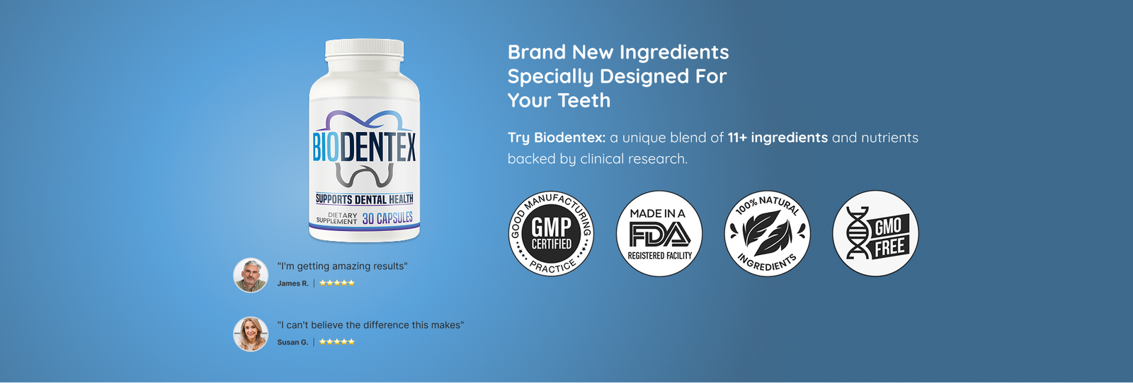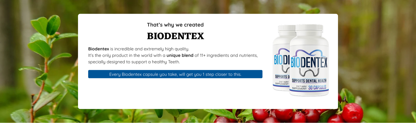 Biodentex is an advanced formula designed to support your tooth and gum health in a natural way.